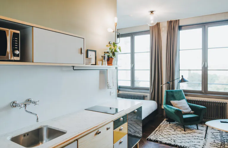 Ein im Vintage-Stil voll möbliertes und eingerichtetes Apartment (exkl. Bettbezüge & Handtücher), ob für dich allein oder zu zweit. Das Beste ist allerdings, dass in unseren Neon Silver und Neon Gold Kategorien bereits sämtliche Nebenkosten in einer Flatrate Miete zusammengefasst sind. Egal, wie viel Wasser oder Strom du verbrauchst und wie oft du deine Heizung anschmeißt, du zahlst immer nur deinen fixen Mietpreis und erhältst am Jahresende keine fiese Nebenkostenabrechnung. Maximale Transparenz und ein rundum Sorglospaket, damit du dich voll und ganz auf dein Studium konzentrieren kannst. Und on top sind natürlich auch sämtliche Kosten für die Nutzung von Internet und der großflächigen Gemeinschaftsbereiche wie Lobby, Laundrette, Study Area, Gaming Room & Gaming Areas sowie die Nutzung des Fitnessstudios und Teilnahme an unseren vielfältigen Events in deiner Miete bereits enthalten.