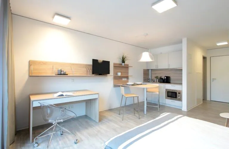 Jedes Apartment verfügt über eine eigene Küche, aber du hast großes vor und willst zusammen mit deinen Freunden kochen, essen & tratschen? Kein Problem, in unserem multifunktionalen Gemeinschaftsbereich mit Gemeinschaftsküche hast du zusätzlichen Platz und kannst den Abend zu etwas ganz Besonderem machen.