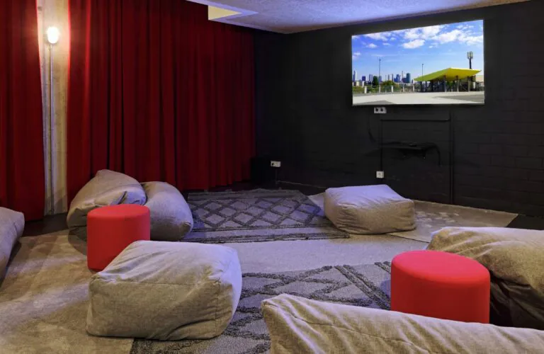 In our gaming room, you'll find game consoles and games that you can play with up and down at anytime on our giant screen. Either completely on your own or with your friends.