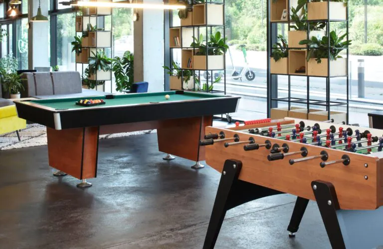 The variety within our community lobby offers an impressive world of options from the high tech to the cleverly vintage: Console gaming exists alongside the likes of pool, ping-pong and air hockey. The lobby also gives residents access to the tranquil world of our gardens and other open spaces.